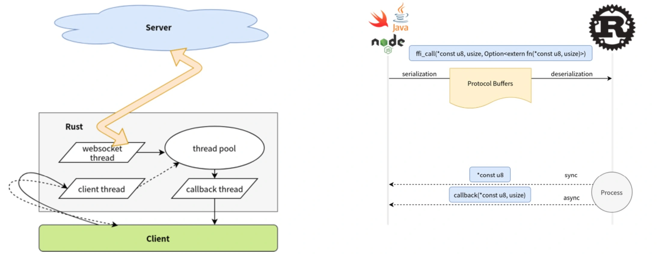 飞书团队主要其在 SDK 中使用(非 UI 部分),作为跨平台的实现。个人感觉这种做法还是比较小众的,本次大会的分享没有介绍其背景,重点介绍了如何利用神经网络来预期用户可能会打开哪些会话,做到智能加载消息列表。Infoq 上的 Rust 跨平台客户端开发在字节跳动的实践 有比较详细的介绍: