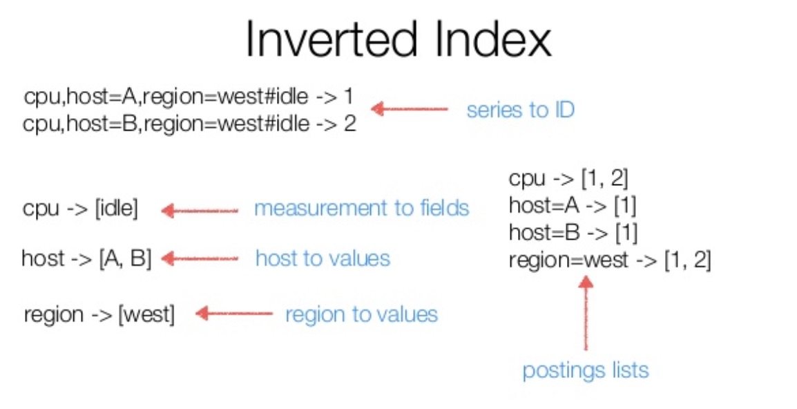 - 为了加速查询,除了专门存储压缩数据的模块外,还有个单独的索引模块 TSI,其核心数据结构是一个倒排索引